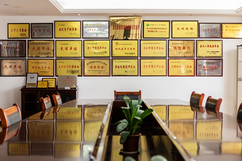 “明邦”商標被認定為“湖北省著名商標”,同時被評定為“湖北名牌”產(chǎn)品,企業(yè)同時被評定為“湖北省重合同守信用企業(yè)”、“湖北省新型墻材產(chǎn)業(yè)化示范基地”和“荊門市循環(huán)經(jīng)濟示范企業(yè)”,公司通過了“綠色建材評價標識證書”、“GB/T 45001-2020職業(yè)健康安全管理體系認證證書”、“GB/T 19001-2016質(zhì)量管理體系認證”、“GB/T 24001-2016環(huán)境管理體系認證證書”。